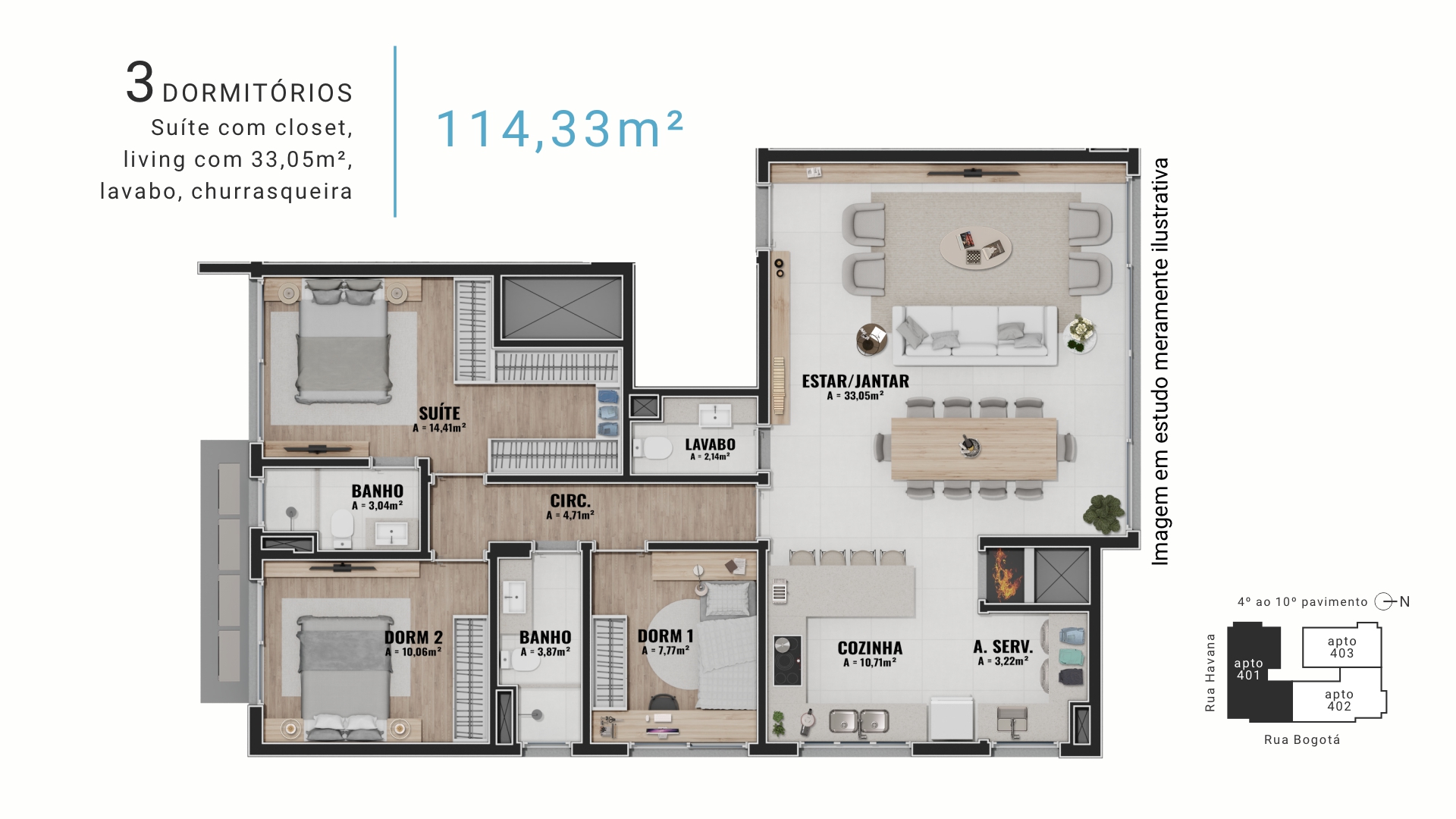 • 3 apartamentos por andar